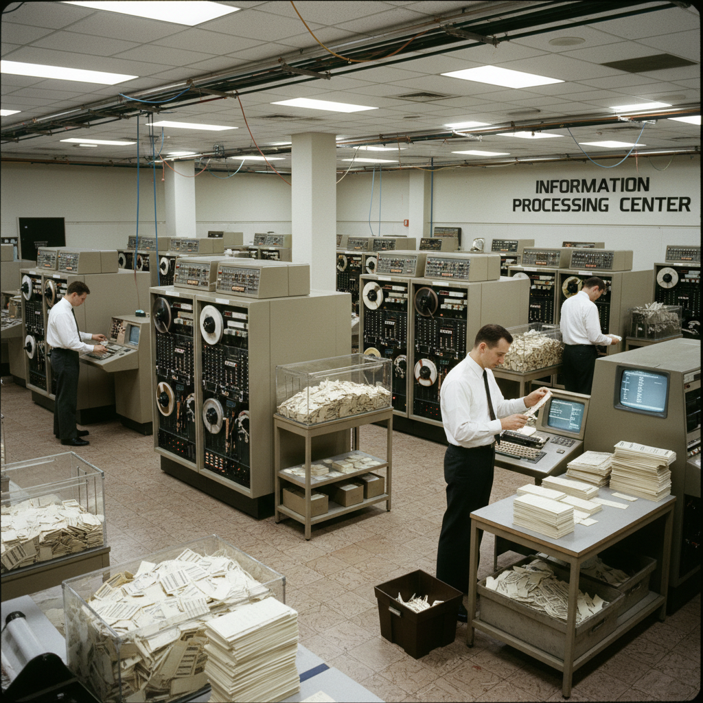 The original information processors were hulking behemoths—room-sized mainframes, tape reels spinning, operators in white coats feeding punch cards into metal mouths. These machines did one thing: process information according to strict, unyielding logic. They powered the first wave of digital transformation, automating accounting, logistics, and early data analysis for governments and corporations that could afford their hunger for electricity and floor space.