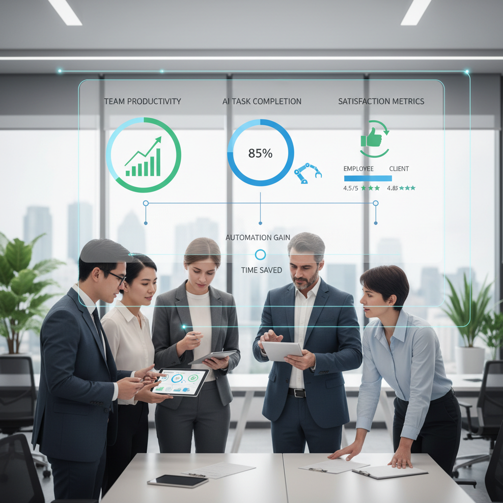 Strong KPIs for AI teammate performance include: reduction in manual tasks, faster ticket resolution, improved user satisfaction, and measurable ROI. Benchmarks from leading enterprises show 25–40% gains in workflow efficiency and 15–20% higher job satisfaction where human-AI teams collaborate effectively.