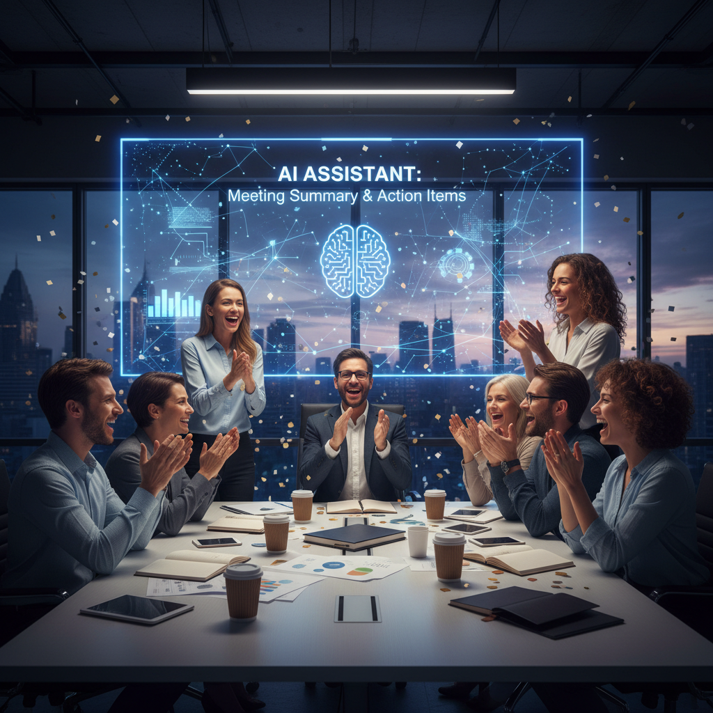 Team energized after a successful, AI-assisted meeting.