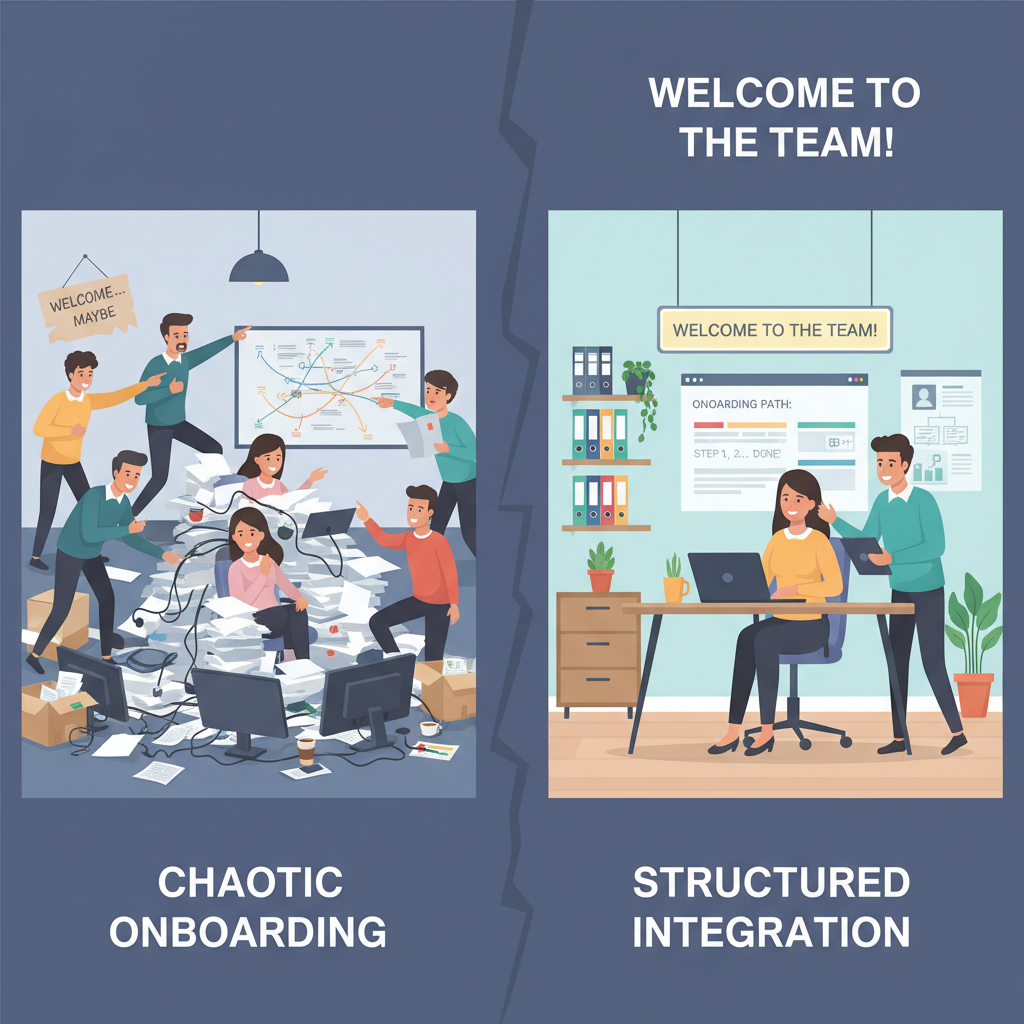 - Startup: Rapid growth, zero onboarding rituals. Result: mass confusion and two failed launches.