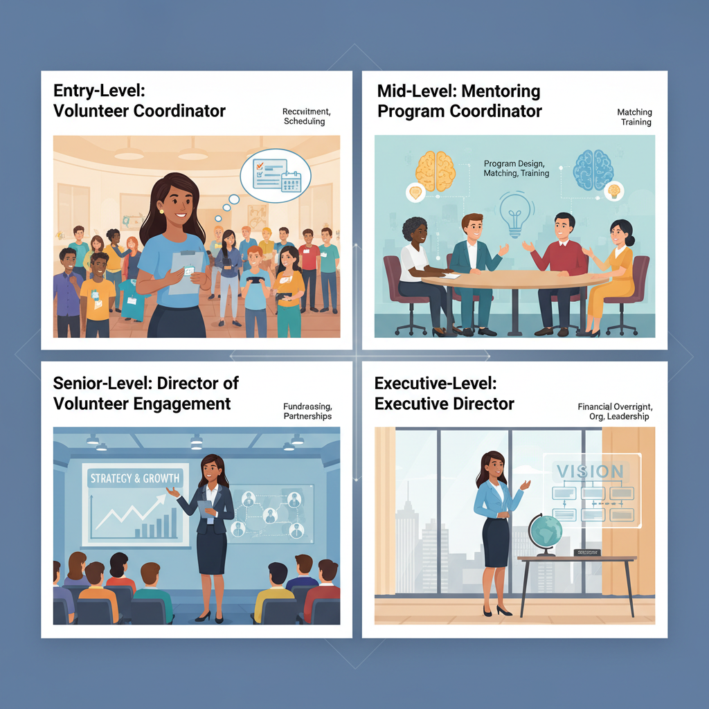 The promise of “move up fast if you work hard” is more mirage than reality. Many coordinators face flat hierarchies and limited advancement opportunities, especially in smaller organizations. Typical trajectories include moving into management, specializing in areas like grant writing or digital engagement, or pivoting to larger nonprofits or international NGOs.