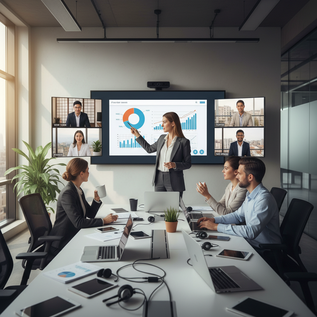 Alt: International team collaborating virtually, demonstrating global office professionalism and digital etiquette