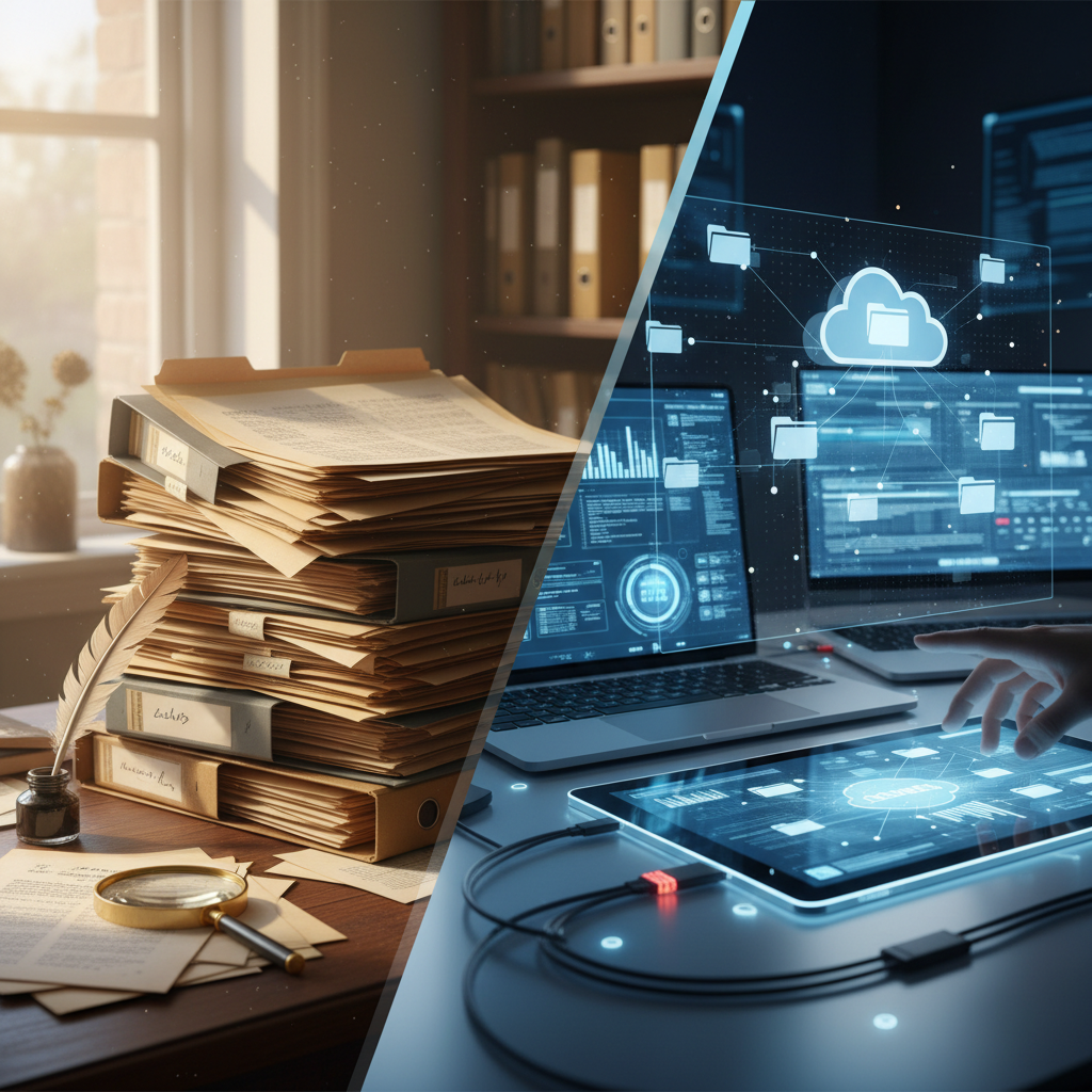 Document organization isn’t new—it’s just never been this overwhelming. In the analog era, steel cabinets, alphabetized folders, and a single gatekeeper kept the paper chaos barely at bay. Then came file servers, email, cloud drives, and team chat—each promising more order, yet delivering new avenues for entropy.