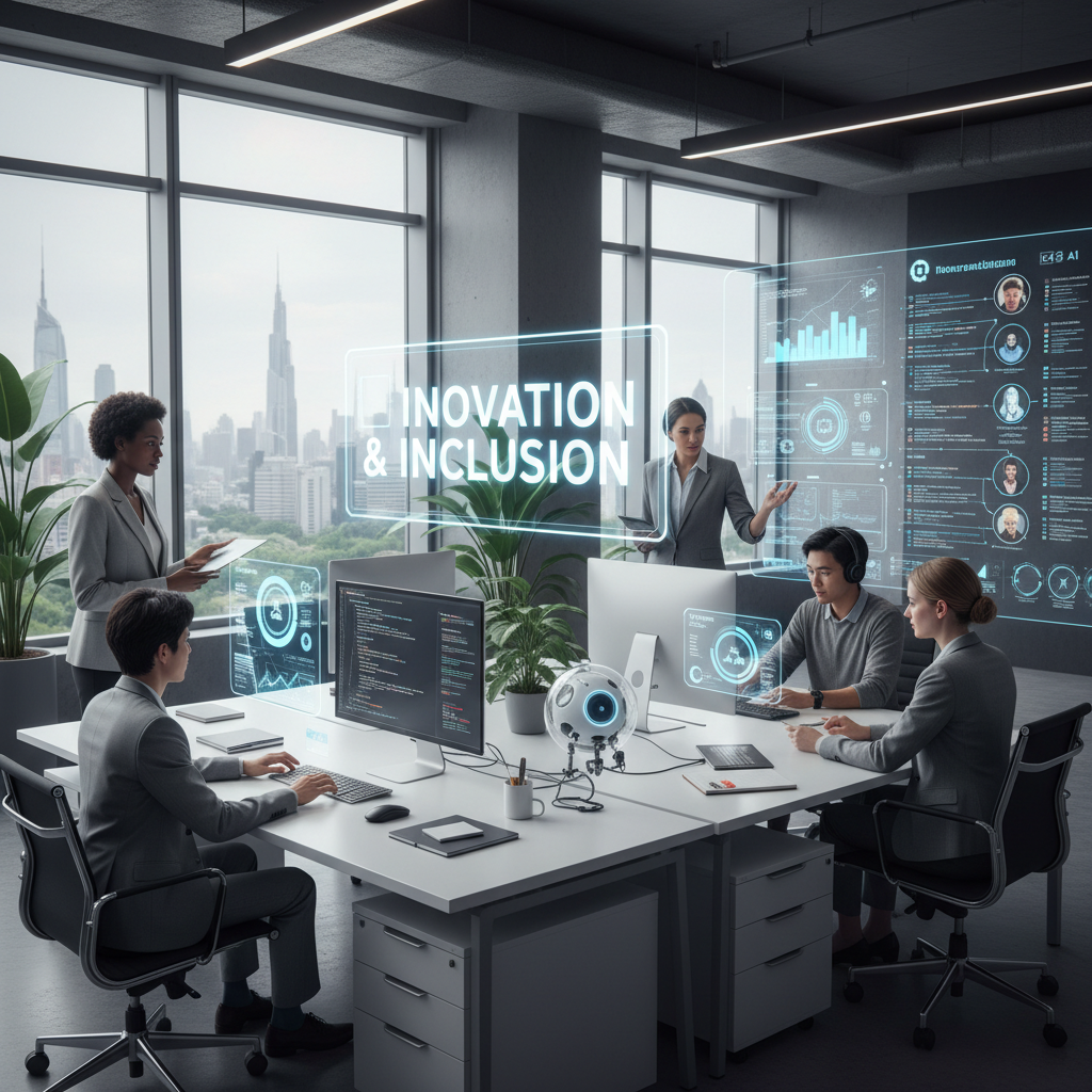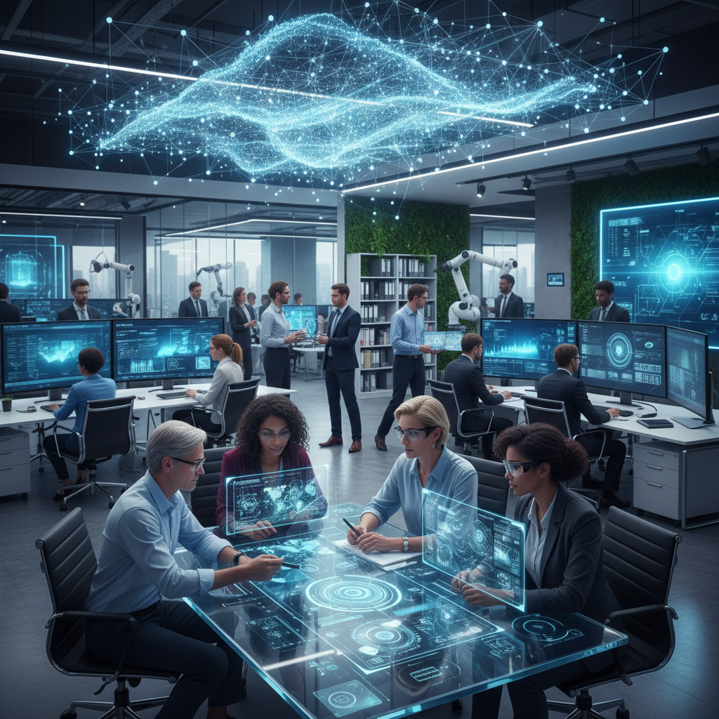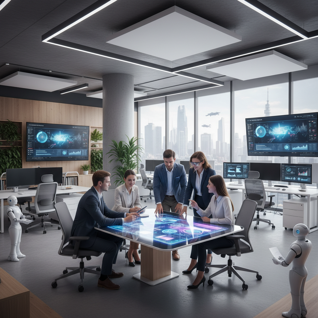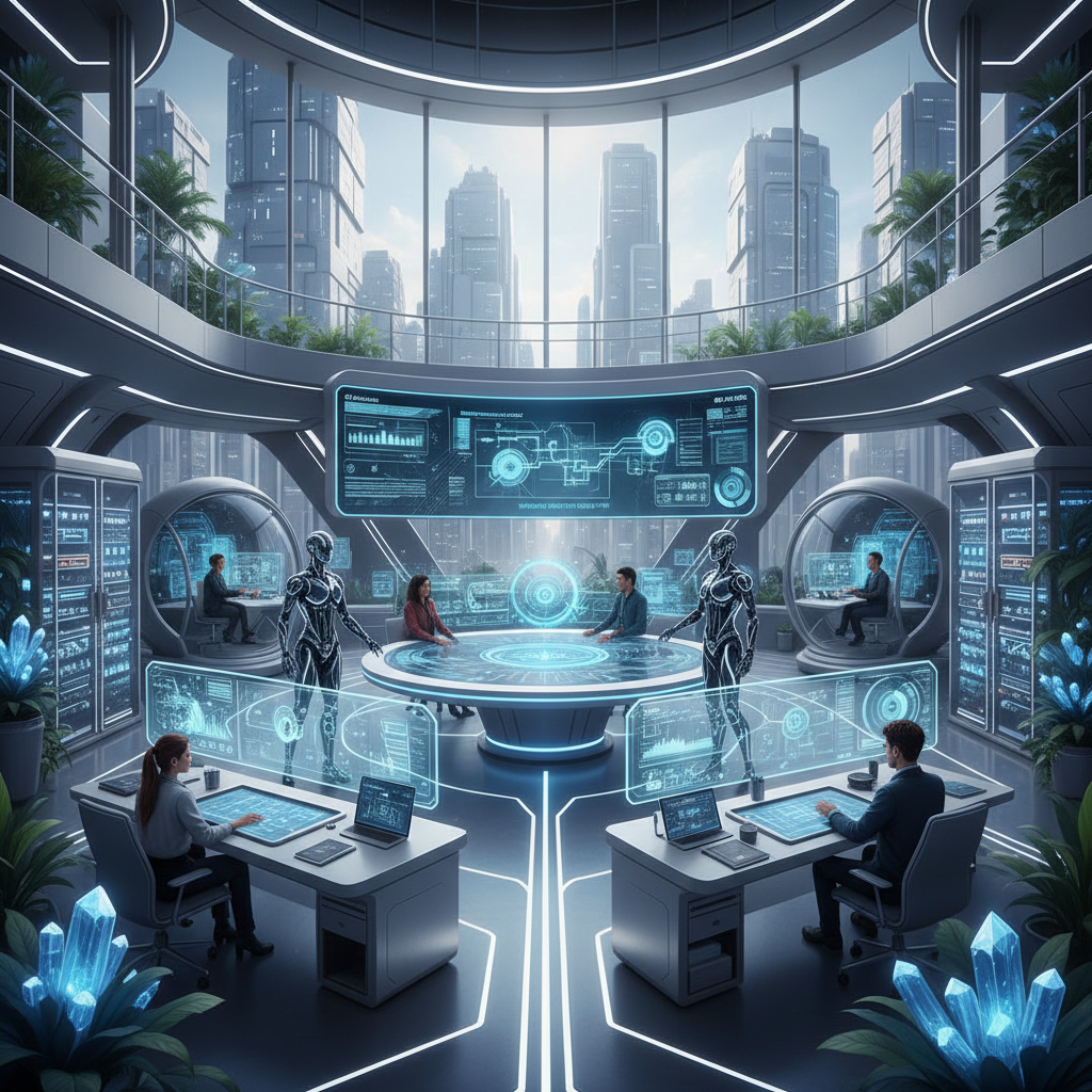 A mix of human and AI helpers working in tandem to optimize productivity and creativity.