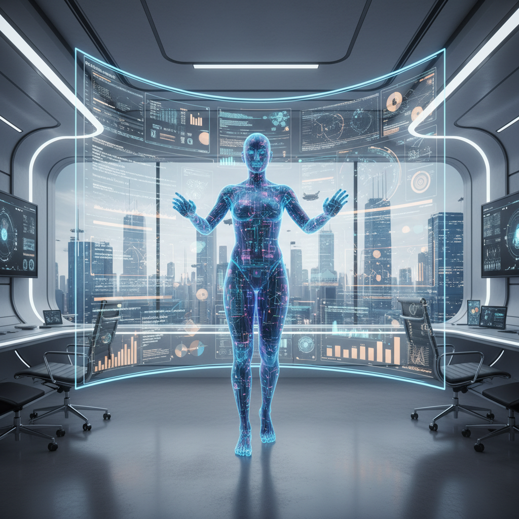 Alt text: AI-powered process helper analyzing workflow data using advanced adaptive algorithms in a modern office.
