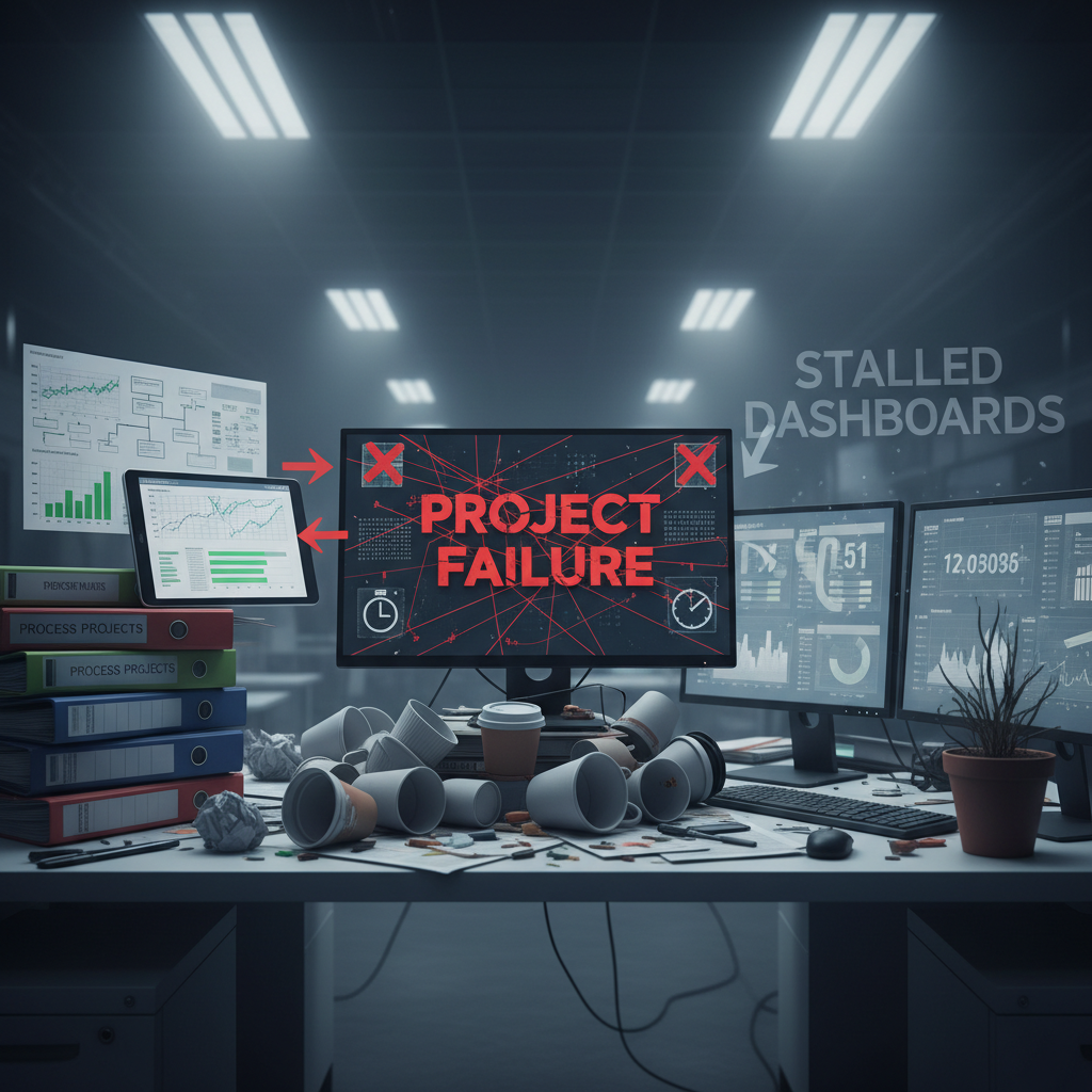 Let’s cut through the sanitized success stories. Research consistently shows process projects fail at alarming rates—but few leaders are honest about the numbers. According to recent CIO analysis, up to 70% of digital transformation projects fall short of expectations, either missing deadlines, going over budget, or failing to achieve their intended goals (CIO, 2024). And process projects are no exception; the same patterns of scope creep, misaligned incentives, and resistance rear their heads.