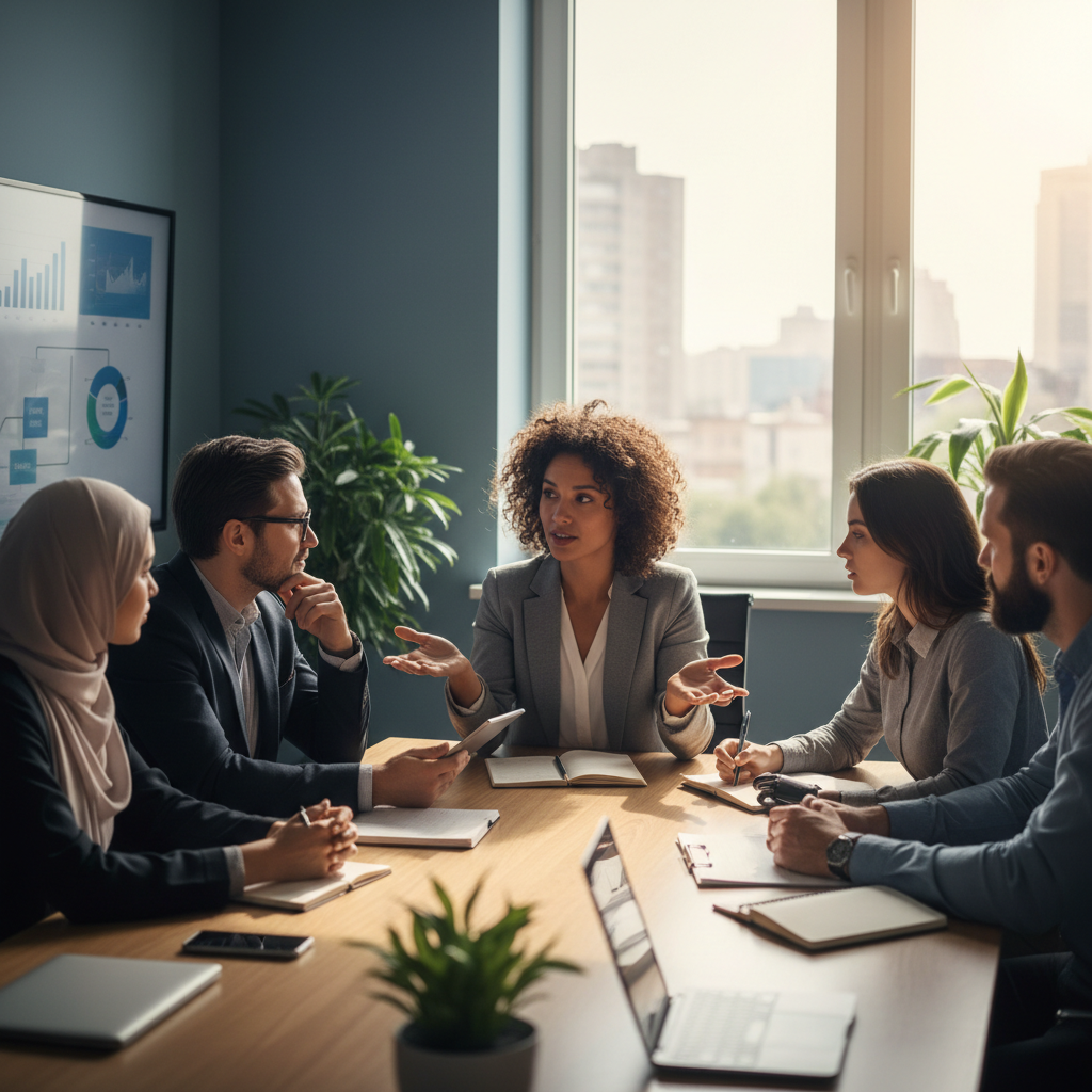 Team members engaged in assertive but empathetic discussion—embodying radical candor in professional communication.