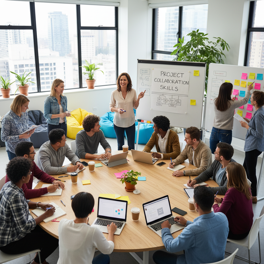 Alt text: Project administrator building a future-proof skill set by attending a workshop in a collaborative enterprise environment.