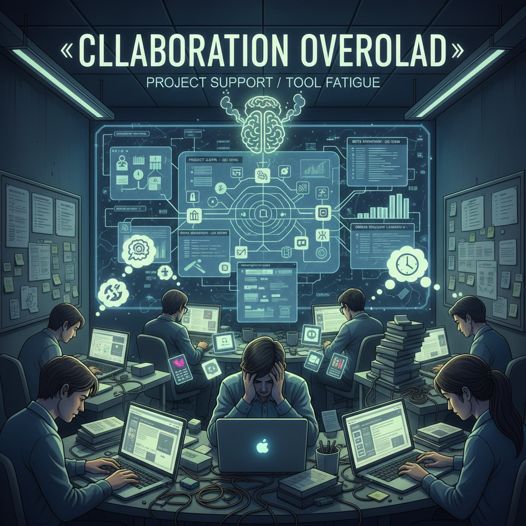 Today’s project support crisis isn’t about having too few tools—it’s about drowning in options with zero alignment. Collaboration overload manifests as: