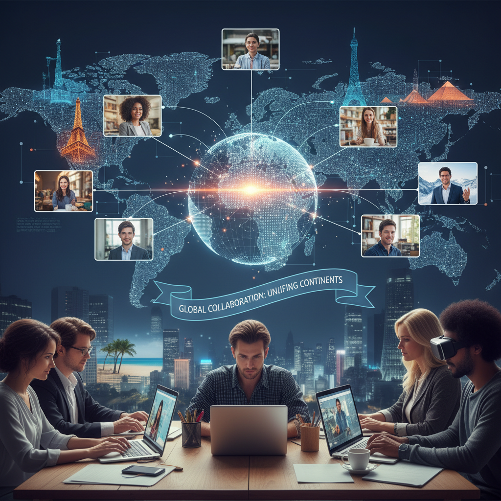 Alt text: Remote team collaborating across continents using digital tools, showcasing global hiring for qualified staff.