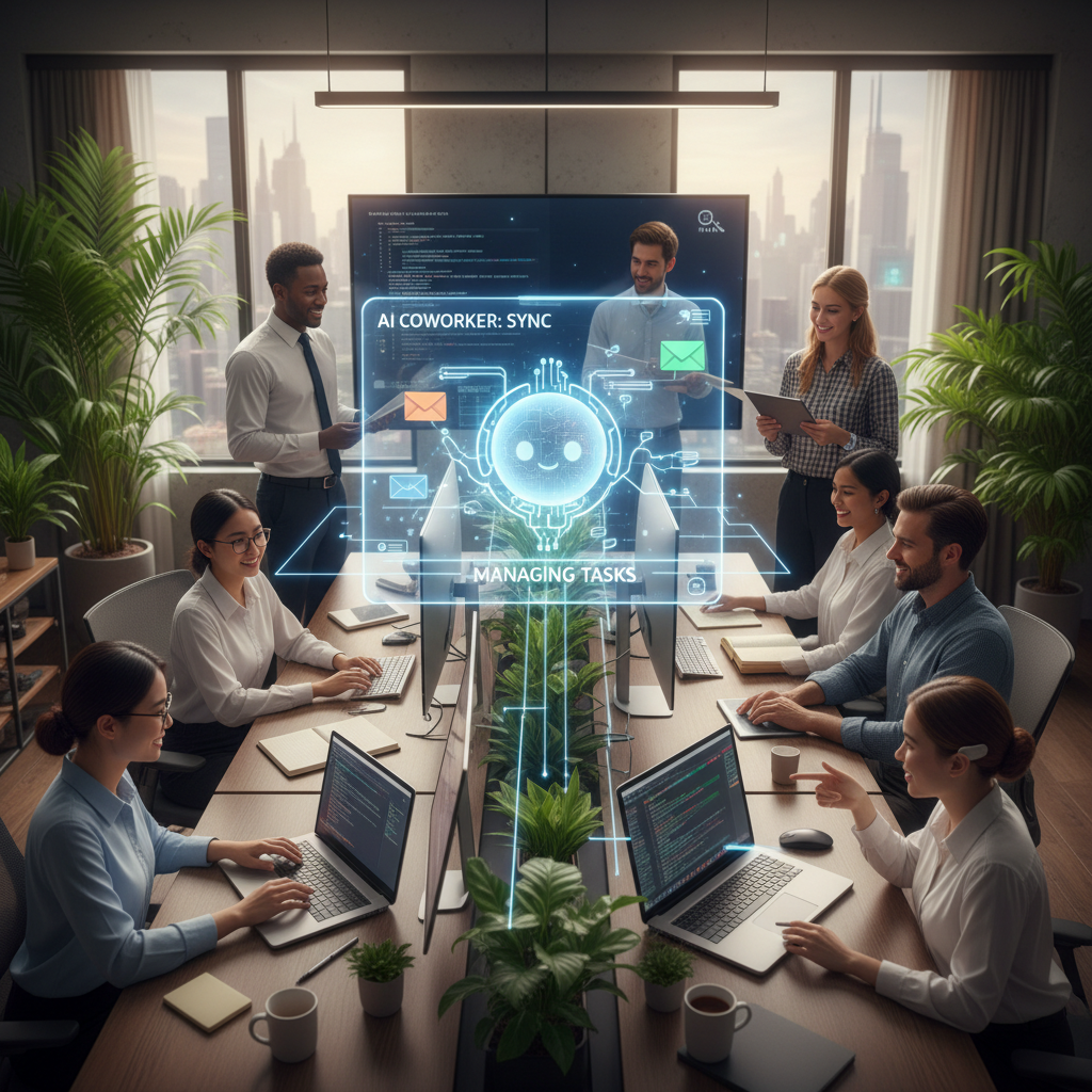 AI-powered teammate managing emails and tasks, symbolizing digital reliability in enterprise.
