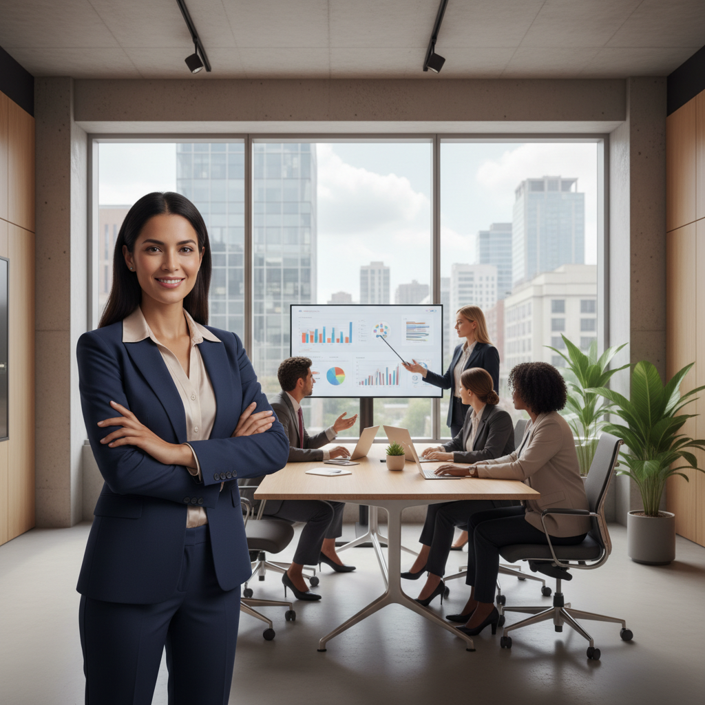 Focused professional exuding reliability in a busy modern office, embodying the reliable professional keyword.