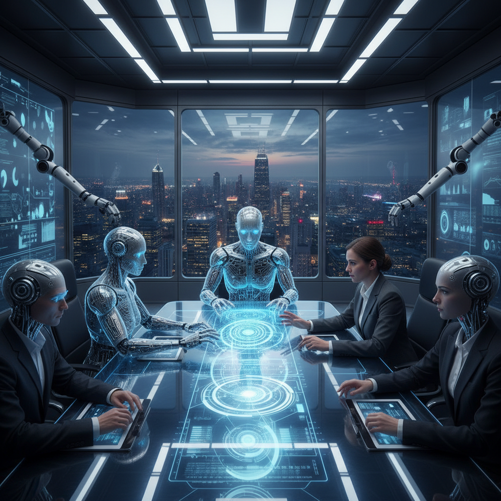 An artificial intelligence system designed to collaborate with human users, performing tasks and making decisions alongside them in the workplace.