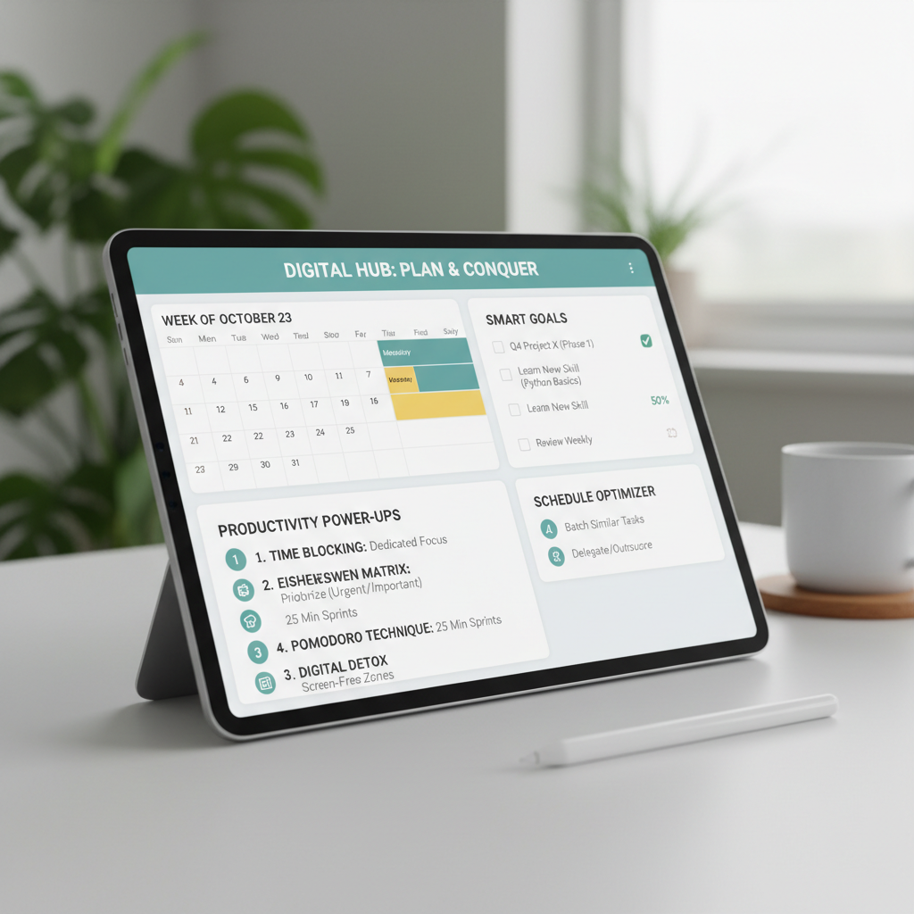 Modern digital schedule app offering real-time productivity tips for resilient schedule management.