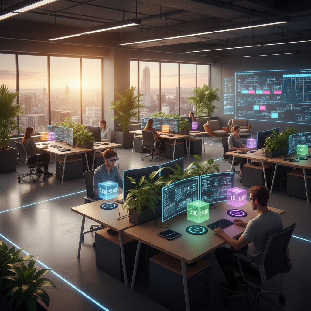 Digital timeboxing visualization in an open office, showing practical schedule management methods in action.