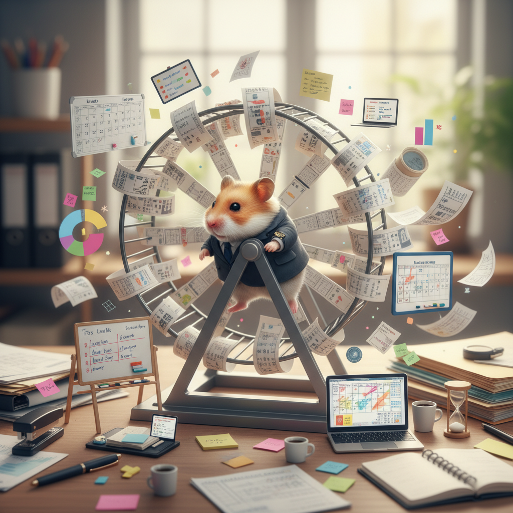 Visual metaphor for the endless hamster wheel of busyness created by poor schedule management.
