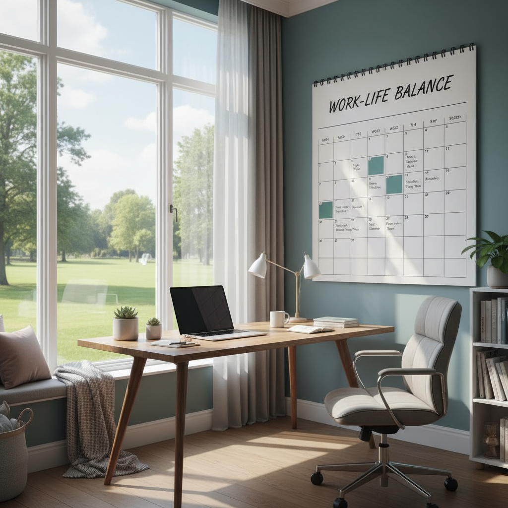 Peaceful office symbolizing the power of effective schedule management for work-life balance.