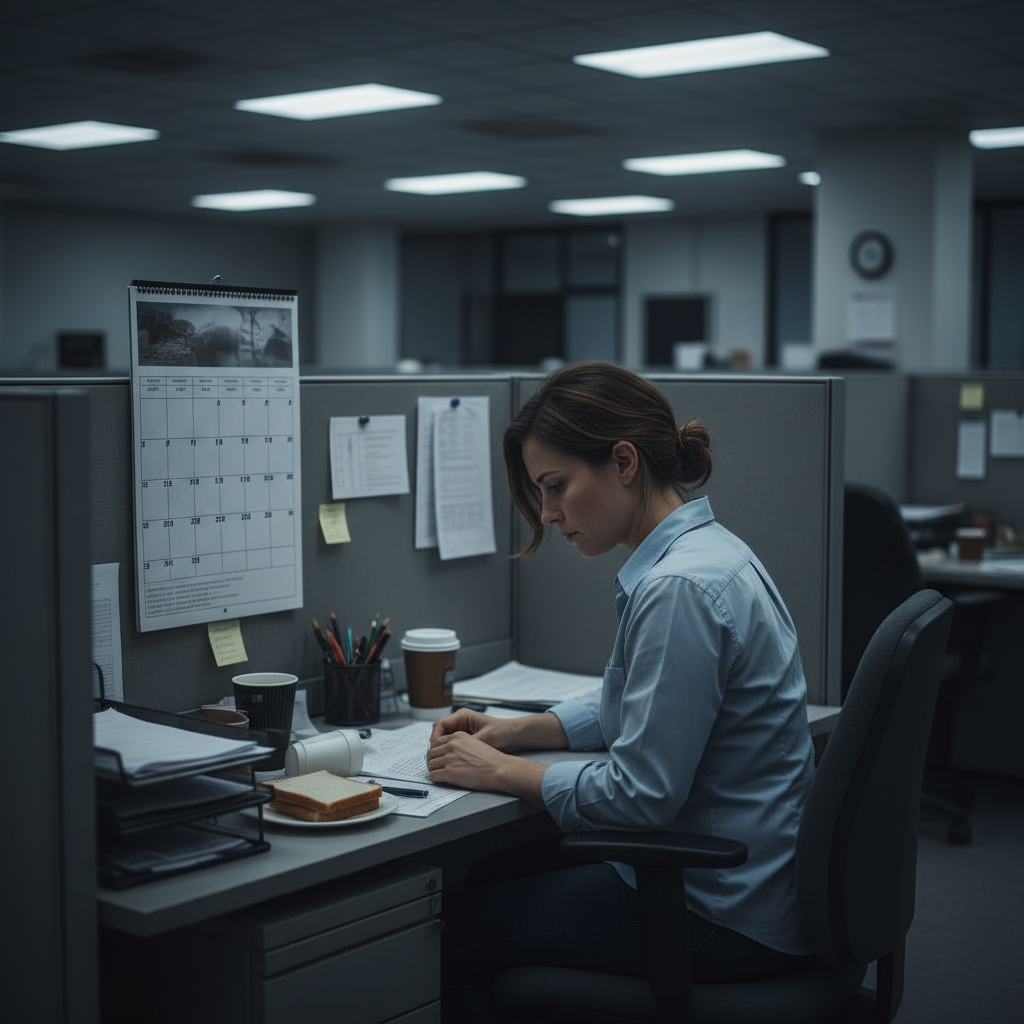 Alt: An office worker stares at a blank calendar page, feeling disappointed by the pursuit of schedule perfection.