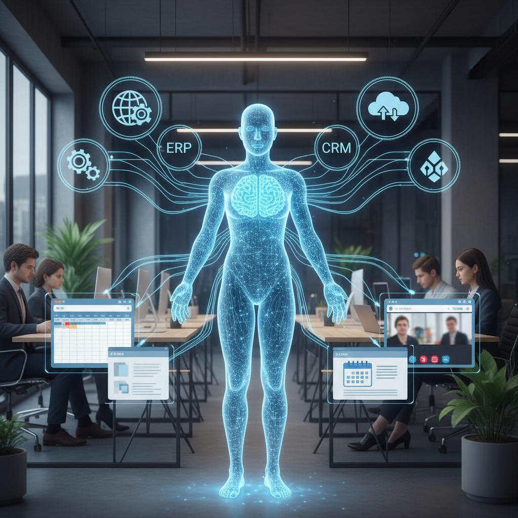 A holistic AI or digital platform that works across teams and systems, managing tasks, communications, and knowledge-sharing.
