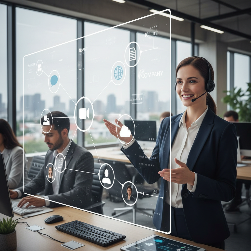Photo: Service representative managing enterprise teamwork through digital platforms, visualizing invisible collaboration