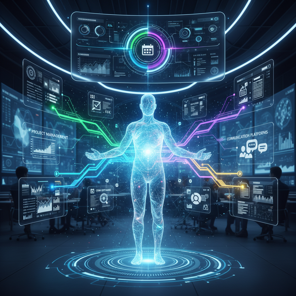 Alt: Digital assistant integrating work streams for productivity and workflow automation.