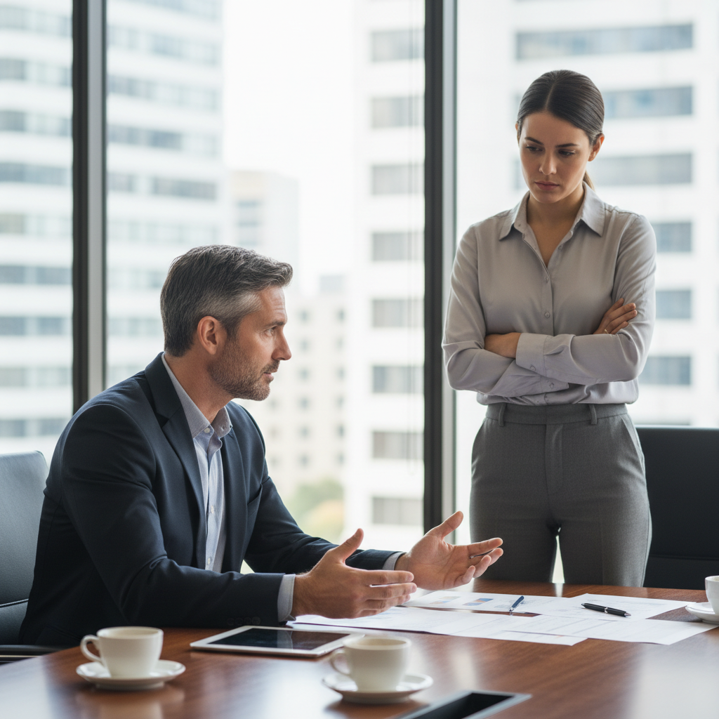 Alt: Manager addressing employee resistance to digital transformation, a key challenge in streamlining.