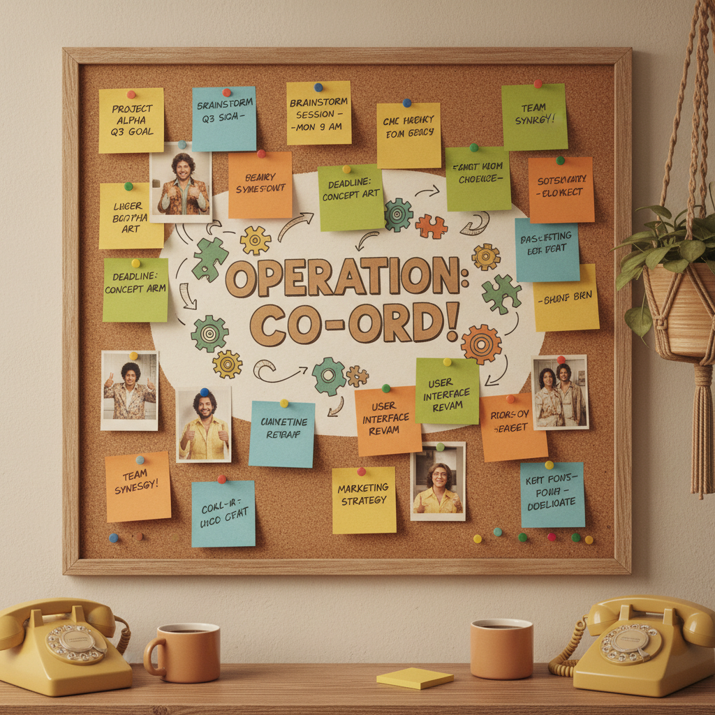 Before Slack, Asana, and AI teammates, “coordination” was all about physical proximity and analog tools. Teams huddled around overstuffed bulletin boards, shouting status updates over office partitions, and scrawling to-dos on sticky notes. It was messy, prone to failure, and utterly non-scalable. Critical deadlines slipped through the cracks because a post-it fell behind a monitor. If you weren’t in the room, you were out of the loop.