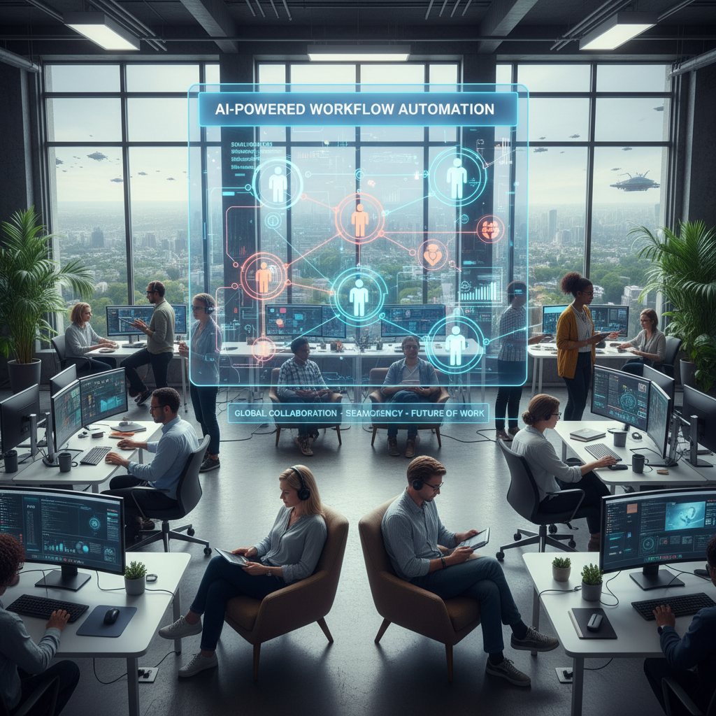 Alt text: Diagram of AI-powered workflow automation for remote workers showing app connections and user flow.