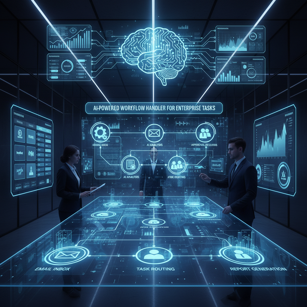 A digital system (often AI-driven) that automates, orchestrates, and adapts business processes across teams. Example: An email-based handler that turns incoming messages into actionable tasks.