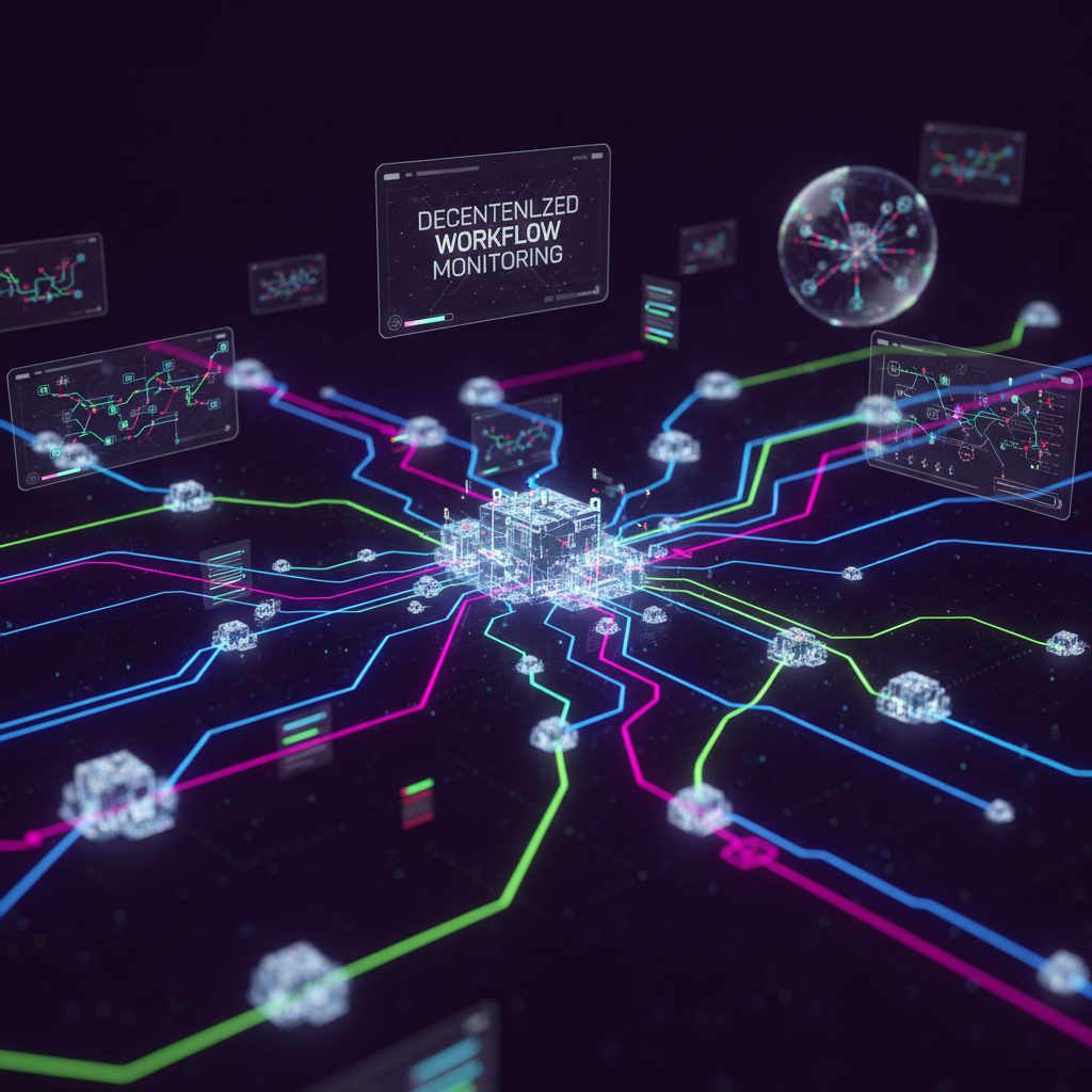 Alt text: Abstract digital network showing workflow paths and nodes, representing decentralized workflow monitoring.