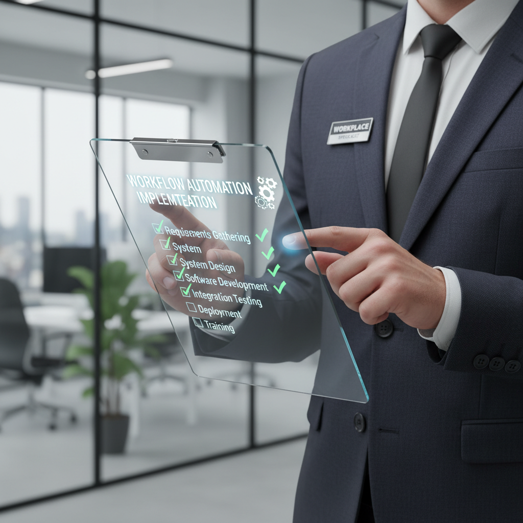 The process of using digital systems (frequently AI-powered) to minimize manual, repetitive tasks in enterprise environments.